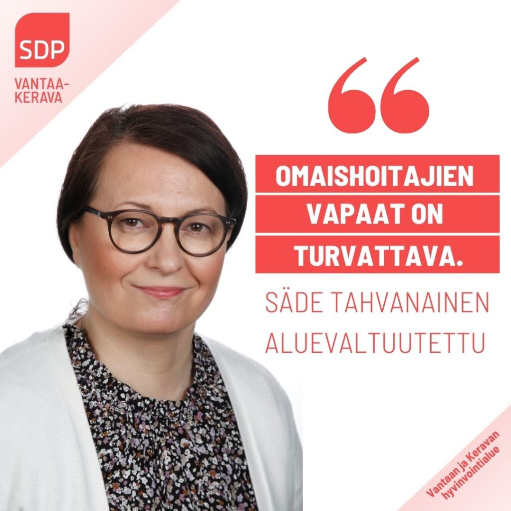 ”Omaishoitajille kuuluu lakisääteinen määrä vapaapäiviä. Vantaalla olleesta käytännöstä toteuttaa vapaapäiviä on tullut vahvaa kritiikkiä kansalaistapaamisissa”, toteaa aluevaltuutettu Säde Tahvanainen.
